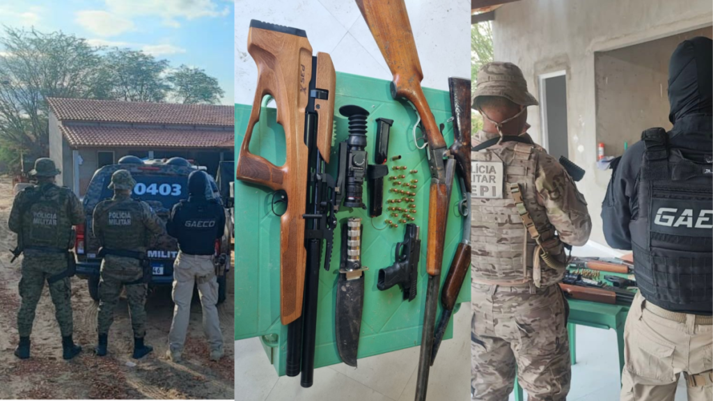 Segundo o MP, o homem estava foragido, com mandado de prisão em aberto por tráfico de drogas, e foi detido em flagrante por posse ilegal de armas. Na ação, foram apreendidos quatro armas, entre espingardas e pistolas, munições e um telefone celular.